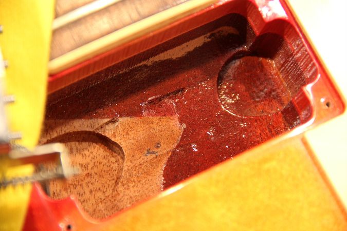 ネックがフロントPUのキャビティー内までセットされている、