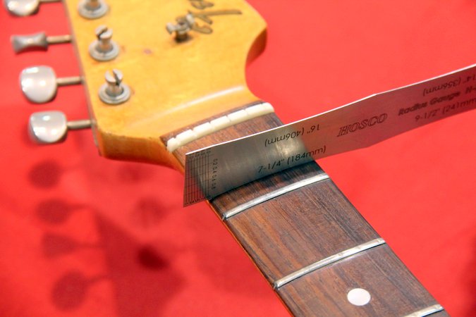写真は指板Rを測る為の道具で「Rゲージ」と呼びます。