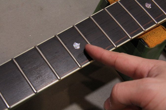 指板に指をギュッと押してみると写真のように指板上に指の跡がつきます。